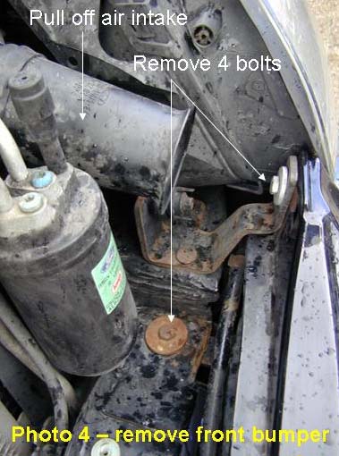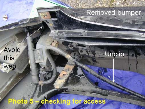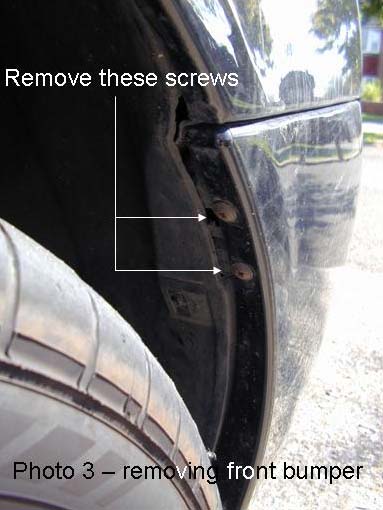necessary to remove the bumper. The positions are as shown in Photo 1. I