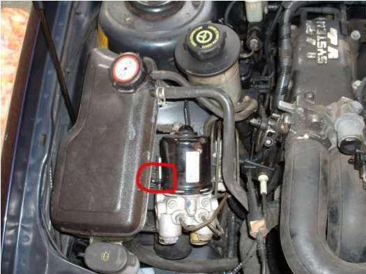 ABS pump which is just to the right of the expansion tank, circled in red is the