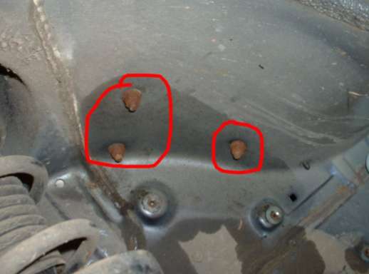 bolts 1 toward the rear of the car and 2 toward the front, the rear is easy to