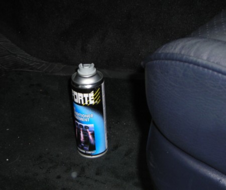 Air Conditioning Treatment Now that spring is here, I thought it was time I treated my Air Conditioning to a ‘spring clean’! I usually do this once a year at the same time as changing my pollen filters. This helps prevents you getting ‘air con sickness’, similar to having a head cold all the time you’re in the car, because of a dirty system. This time I’m using Forté Air Conditioner Treatment. This treatment effectively eliminates mould, fungi and unpleasant odours that can occur in air conditioning systems. It’s a very easy process requiring only about 15 minutes. Step 1. Make sure all doors (except the front passenger door) are closed and the windows and sunroof are shut. Step 2. Move the front passenger seat fully back on its runners. Step 3. Set the climate control/air conditioning dials to maximum fan speed and the direction to face. Select the reticulation function ON. Step 4. Take off cap from treatment and push the release button down until it locks in place. Step5. Place the can on the passenger foot well area so that it remains upright at all times. Step 6. Close passenger door and wait 10 minutes for the treatment to work. During this time, the can will continue to discharge for 5 minutes. This is normal. Step 7. Open all doors and remove empty can. Your air conditioning will now be fresh and clean and healthy.. Thanks to Andrew Higgins for this page