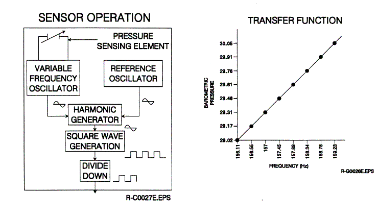 Barometric Pressure (BARO) Sensor Data The BARO sensor contains a pressure sensing element, a capacitor, and signal conditioning electronics. The capacitor has a pressure reference which results in one surface if the capacitor being partially deflected. Further changes in atmospheric pressure deflects the surface further and produces a change in capacitance , which is converted to a frequency by the conditioning electronics.