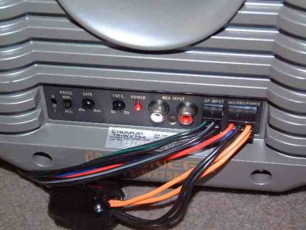 Switched Live In this case, a wire emerging from the rear of the car radio will provide 12 volts only when the radio is turned on and originally would have been used to turn on an amplifier relay or raise an electric radio aerial. As soon as the radio unit is turned off the volts on this wire drops to 0v. In the case of the Ford 7000 series head unit in the Scorpio Ultima the wire is colour coded blue, with an orange stripe but this must be confirmed with a circuit tester before you continue. We do not use this wire to provide the power for the amplifier because it does not provide enough amps to drive the wattage required. It is simply a signal wire intended to be used to switch a relay built into the amplifier (and the sub, if you fit one.) Relay In this particular instance, relays are usually built into amplifiers and subs. There are two live connections; one the switched live and the other a permanent live. Although the permanent live is always connected to the amplifier, the amplifier does not turn itself on until it receives 12 volts on the switched live connection. In this way the act of turning the radio on also switches on the amplifier, although one is unaware of this (until you hear the sounds!) Why bother? Well, if an amp is permanently connected and did not have a relay it would flatten the battery even though it was not in use, but if it was not permanently connected it would not work when you turn the radio on with the ignition off. RCA (Low Level) Signal An example of inputs is shown here, on a Pioneer sub-woofer. The RCA inputs are clearly seen, awaiting phono connections for left and right. To the right are the connections actually in use to the SP (speaker) inputs. To the right of these are the switched live and two 10amp live supply wires, which are ballasted to smooth out noise from other electrical circuits. Hi-level (speaker) Signal EricR |