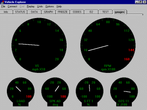 two hundred pounds or less. Using the Laptop computer (286 or higher, DOS or Windows) the OBD II connector is plugged in and the software establishes communications with the EEC-V. The user can then select the required parameters and set up the digital dashboard to show the values of the sensors. On the left menu are pages of tests and diagnosis to assist in identifying faulty components - as the major difference between the OBD II tool and the WDS system used by the Ford Dealers lies in it's fault tree diagnosis that enables any Ford mechanic to use it. The software reads the communications from the EECV which includes the ability to read the values from every sensor that provides data to the EEC. In my case a recent failure of a Pressure Transducer on the EGR resulted in a bill of two hundred pounds for a 50 pound component. Having the ability to read the sensor values as well as the fault codes would have halved the overall bill. The units also possess a logging function that enables you to drive the car and record the data for later replaying on the PC - and this has turned out to be a very useful diagnostic tool. Examples of the use of this tool are on the menus on the