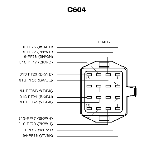 C112 or C110 on the engine bulkhead to the connector C604 on the A4LDE,