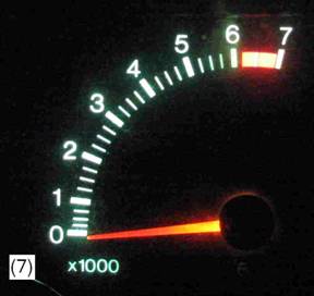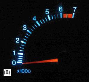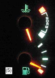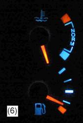 Photo 5 – One normal bulb, slightly over exposed. Photo 6 – One LED, this time the light fall off is noticeable on the temp and petrol symbols. The pointers look fine.