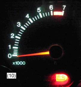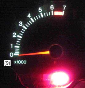 Photo 9 – Normal bulb in rev counter and normal bulb in battery charge light. I deliberately left this over exposed. First reason all photo’s have the same settings. Secondly to show how bright a normal lamp is when concentrated in a small enclosure. Photo 10 – Normal bulb in rev counter and LED in battery charge light.