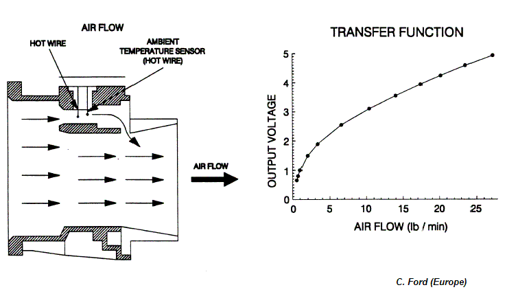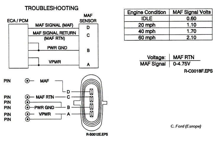 Mass Air FlowSensor Data The MAF used on the Ford Scorpio is the standard hot-wire apparatus. The range of the instrument depends on the engine. Probable readings for error checking are shown below. Readings can also be obtained by the OBD lead and Vehicle Explorer software.