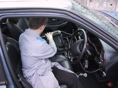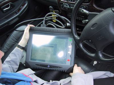through it's diagnostics and identifies the vehicle. In our case it pops up a