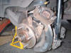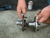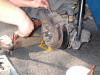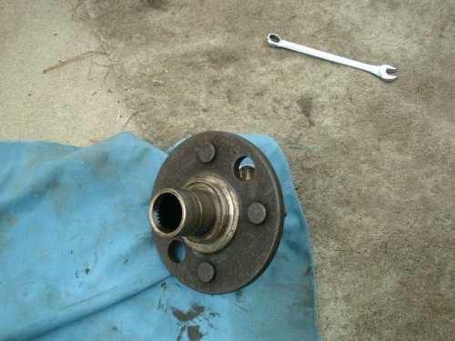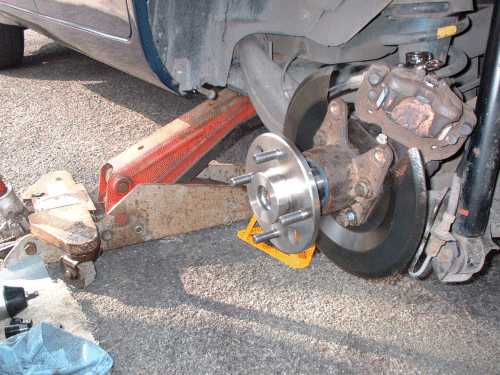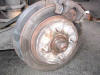 I was suffering from a squeak from the rear nearside of the car which was consistent with wheel rotation. Examination of the brake pads revealed that they were getting quite thin (80000mile) and I had the offer of having them done at cost +£10 so I opted for the easier way and had them done professionally. The rear nearside wheel bearing was not causing concern at this time. After having the pads replaced the squeak returned with a vengeance a couple of days later and I could see that the disc was rubbing very slightly on its outer edge. I thought that this was due to the fact that the discs were 0.5mm below nominal thickness of 9mm so I carried on and the squeak came and went. I eventually heard some rather distressing noises from the rear end so I thought it was time to throw caution to the wind and investigate...getting on in years and the thought of crawling under cars rather put me off but so did Mr Fords cost for his men to do the work (see later). I thought those days were over. On first jacking up the car I found that the wheel was behaving as though it had a Universal Joint for a bearing . It was not firm and tight like it should have been although the noises I had heard were not consistent with 'bearing failure' as I had experienced when examining vehicles in my previous life... or so I thought. I have since realised that one should NOT 'think', just investigate.