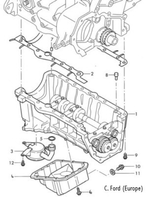 their centres are 0.7 of the Ford has used a Secondary Balancing system, apparently of their own design, in the 2.3DOHC engine. The two shafts are set at the same height but below the crankshaft, in bearings in the sump immersed in the oil. Plastic covers over the counterweights prevent foaming in the oil, and the shafts are driven by helical gears and a simplex chain from the crank sprocket. It is in this way that they have produced a very refined, smooth engine with all the advantages of weight saving, size and simplicity over a 6. The resulting engine is mechanically similar to the DOHC2000 but with a larger bore and with an increased height because of the balancer module. Used first in the Scorpio, the engine produced enthusiastic reports from the motoring press which generally commented on the smoothness and refinement of the engine. Producing 145bhp and with enhanced torque, it was perhaps the obvious choice for the new Galaxy. In this vehicle the engine mountings and manifolds have been redesigned for a transverse layout.