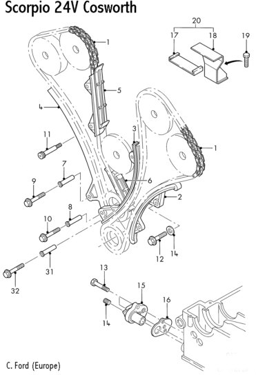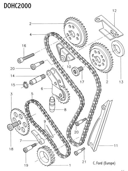 pulley, and then the nearside. There are now two chain tensioners (15) operating