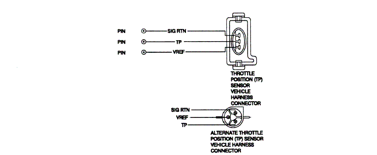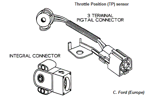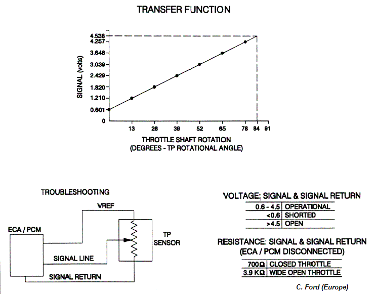 Throttle Position (TP)Sensor Data The Throttle Position (TP) sensor is a rotary potentiometer with a resistive element that varies linearly and in direct proportion to the throttle plate angle. The PCM applies a reference voltage (5V) and ground to the sensor and monitors the return voltage to determine throttle plate position. Not only the change but the rate of change can be detected.