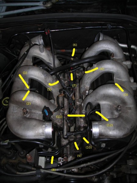Vacuum pipe layout on a 24v inlet manifold system Ok this is the overview of the plenum area on my 24V (note some of these hoses were replaced today as the rubber had gone brittle and was possibly leaking air). You will find on the upper driver side inlet 2